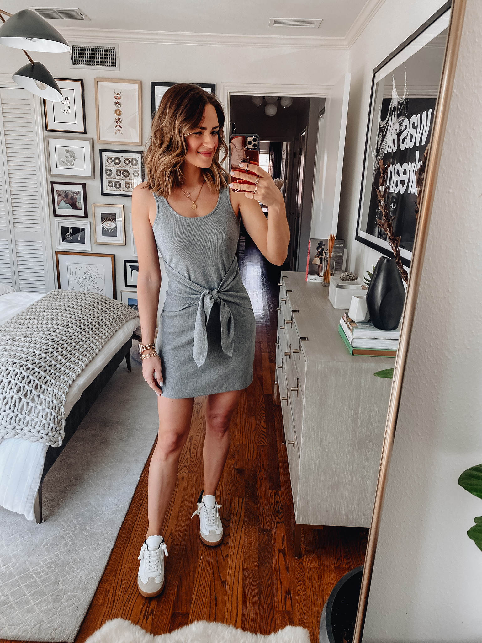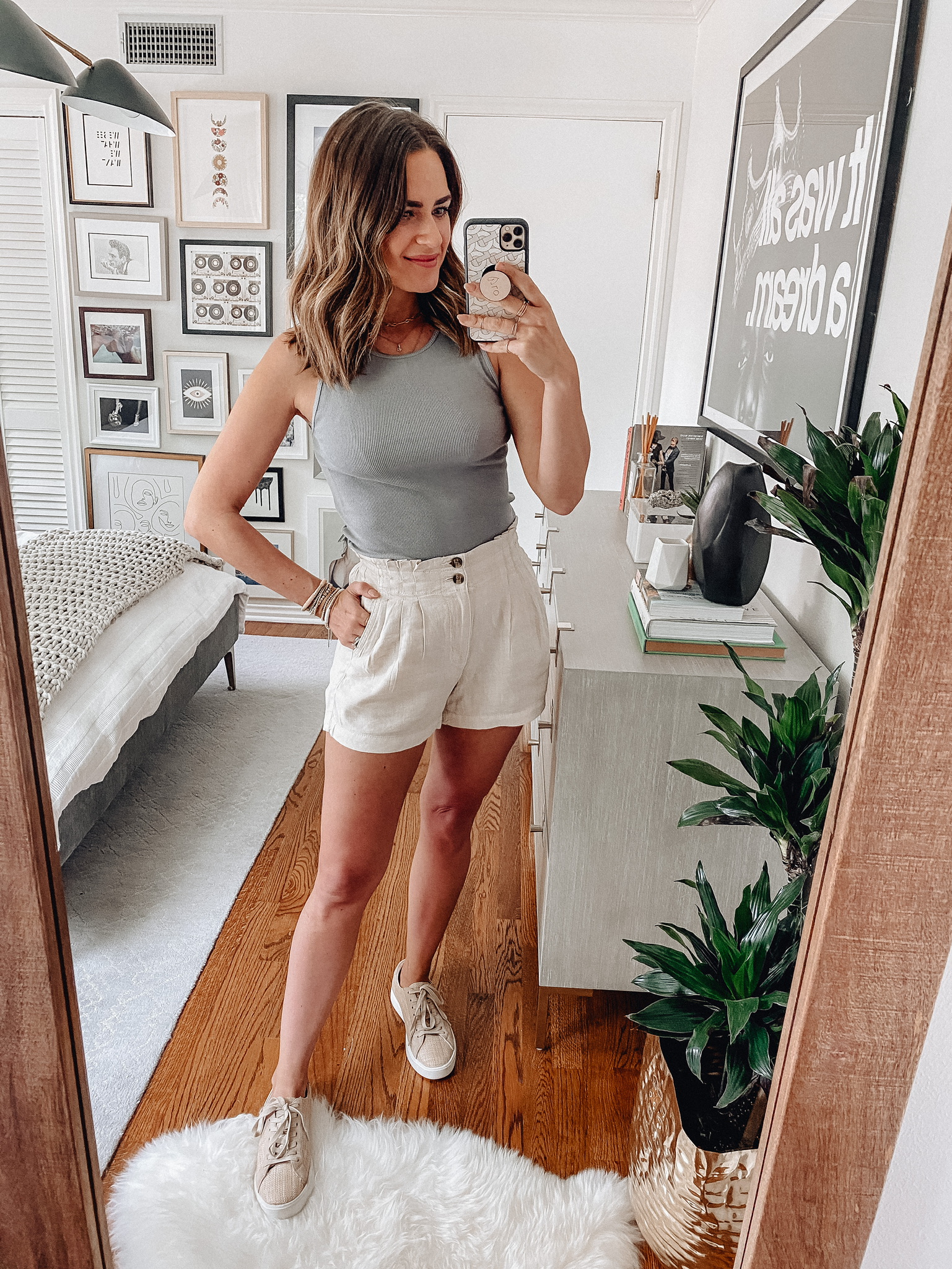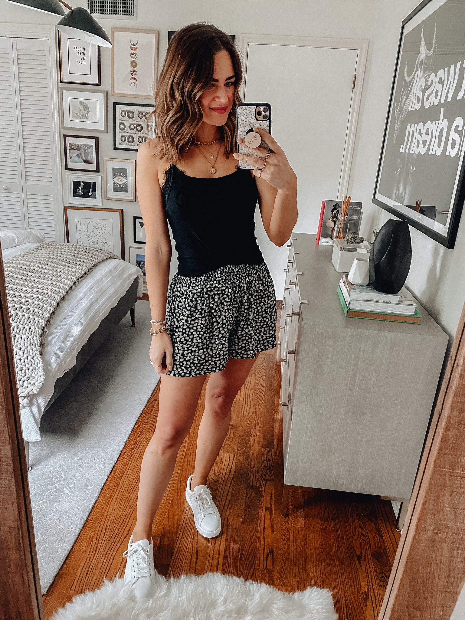 Tank Top // Shorts // Sneakers // Dress // Jacket // Sneakers