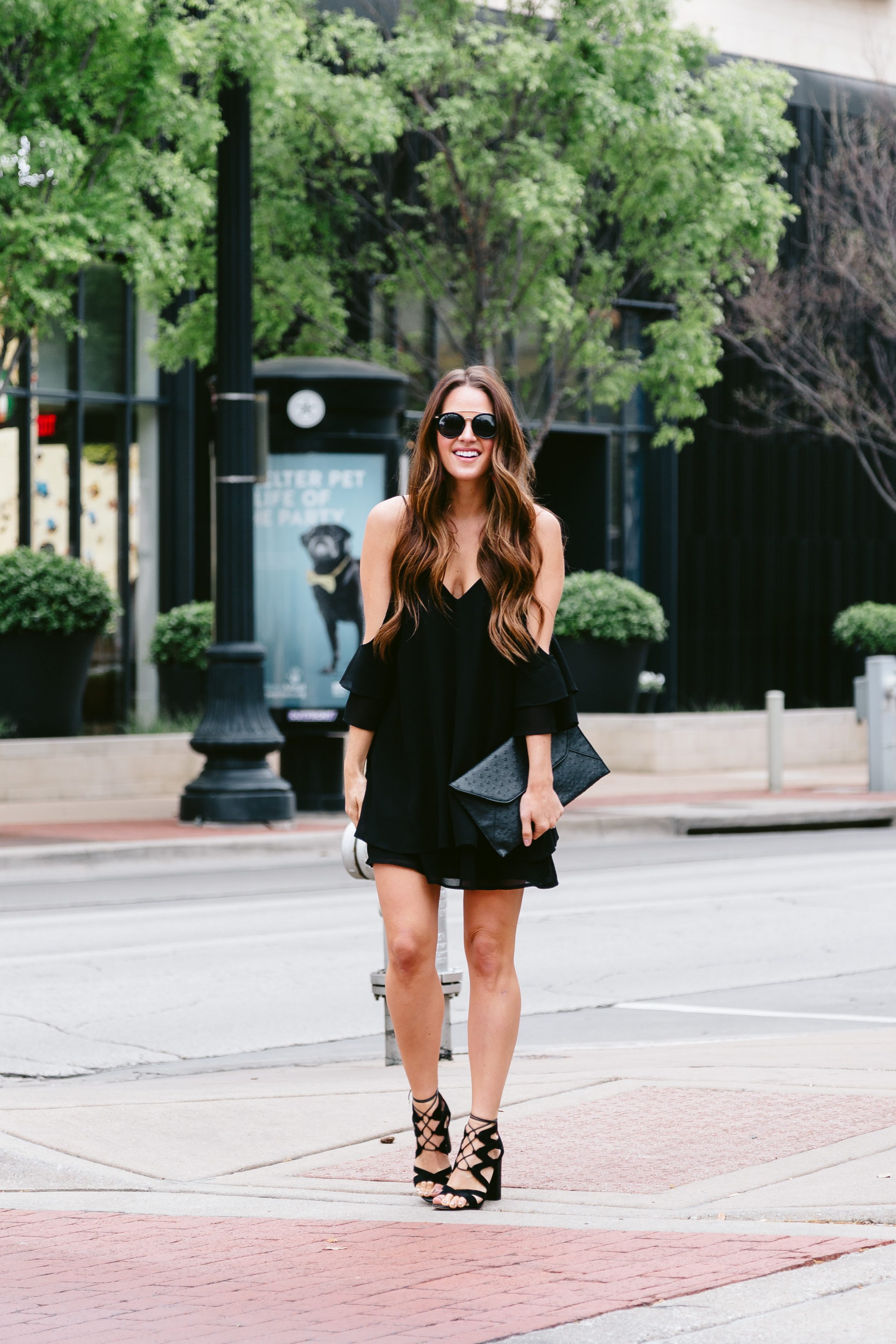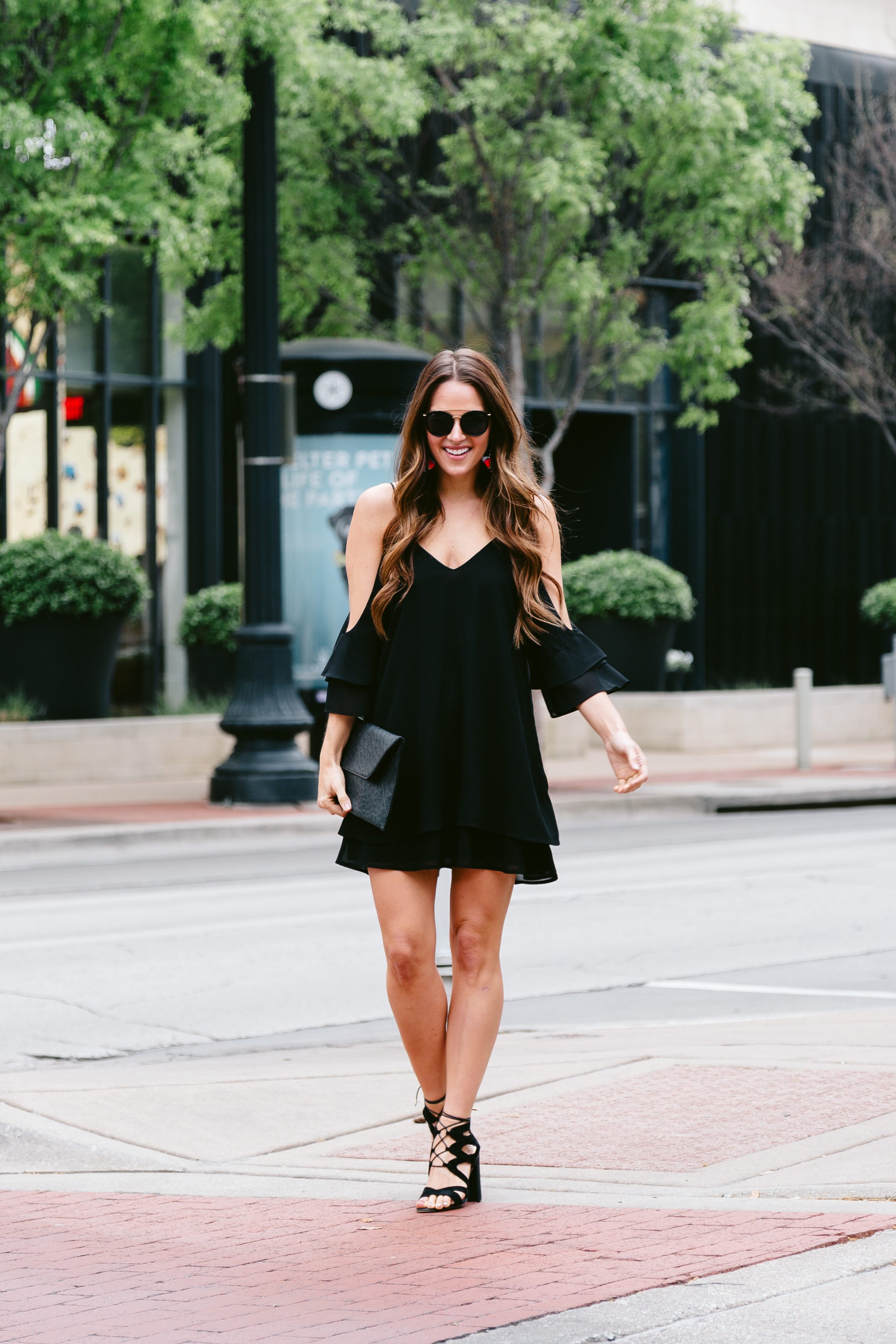 I wear black year round. While some may retire their darker colors in the warmer months, I can’t say peace out to my tride and true classic black. Which is why I am sharing how to make your LBD spring friendly with you all today. I’ll never forgot watching an episode of The Hills or The City or one of those oh so guilty pleasure MTV shows back in the day and hearing Whitney Port presenting to some buyers from Neimans and them telling her, that even in Dallas, Texas, you’ll find women in all black year round. It’s classic, it’s easy, it’s slimming, its chic. Black during Spring is totally acceptable in my book, just add Spring-approved accessories. When choosing a LBD for the warmer months, try to find one that is light-weight like this one! One, it will keep you cool and two, it makes it more seasonally appropriate. Also, try to find one with a fun detail: a cold shoulder, a ruffle, a scallop, some lace detailing, or a little embroidery.