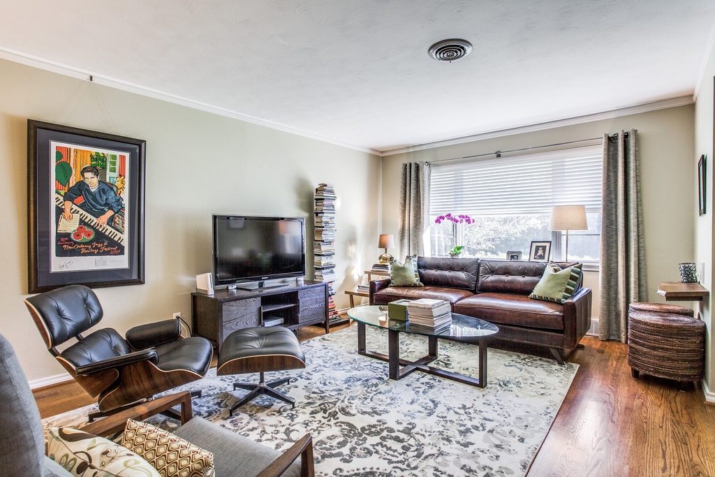 Couch // Coffee Table // Media Console // Record Player // Bookcase