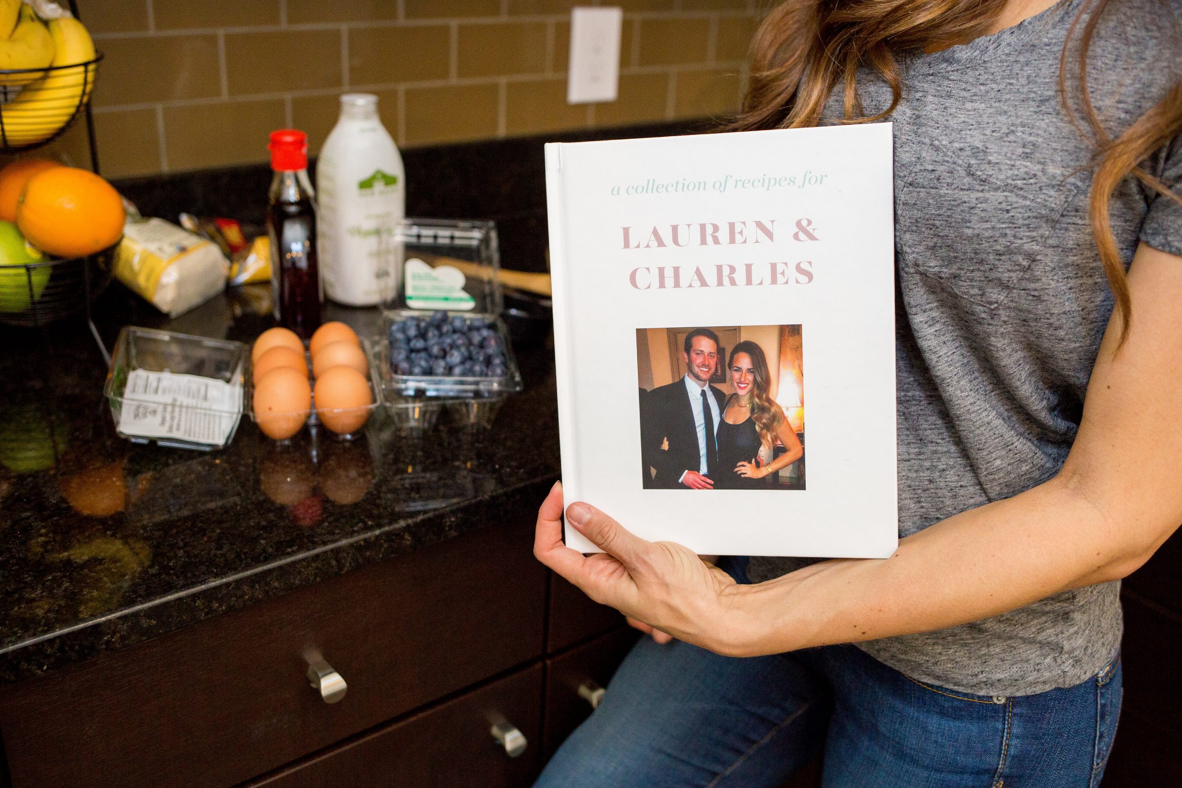 First things first, whoever is in charge decides who will contribute to the cookbook and about how many pages they’d like the cookbook to be. They recommend between 30 and 35 pages in the cookbook, with a few pages left for pictures. The most common feedback they get is that people wish they had more people contribute because they love it so much (myself included) so be sure to keep this in mind when choosing your crew. Next, the e-mail addresses, first and last names of the contributors are provided to Honey and Hive and they reach out to them via e-mail for their photos and recipes. They promise not to spam the contributors and only send out an initial email, a reminder, and one last call e-mail. Contributors are given a unique link for their submission to keep it all organized and easy. Once the recipes are submitted, whoever is in charge picks the design, including choosing the colors (like the bride’s wedding colors). Finally, the book is finalized, and printed. You can have the item wrapped before it is shipped out straight to the recipient or it can be sent directly to you to wrap how you’d like.