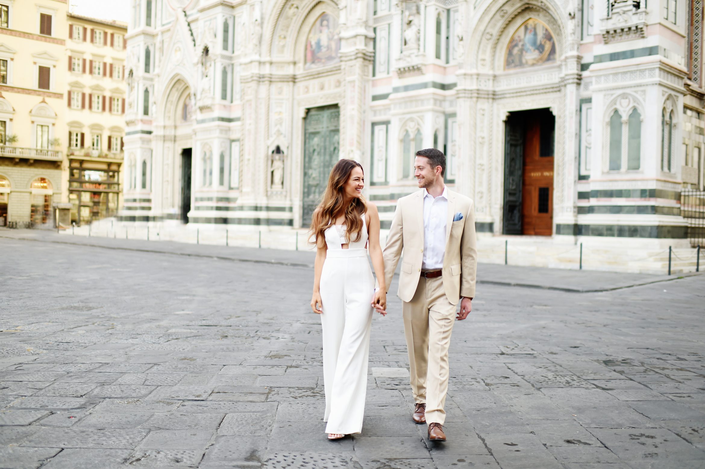 In case you are new here, we got married in Florence, Italy. We had a small wedding and while I don’t tend to be traditional about most things, we wanted to keep the original tradition of not seeing each other on the day of our wedding alive. Since we ruled out a first look that day, we knew we’d have limited time after our ceremony while our guests were enjoying a cocktail hour to take our wedding photos together. This mean we had to prioritize where we took our photos. This is sort of hard in a city as incredible as Florence! There are so many amazing spots to take photos that we could have spent half a day driving around to different locations. After our wedding, we decided on a panoramic view of the city at an overlook (I’m dying to get the photos back so I can show you.. you’ll see just why we chose this!). I didn’t want to be in such an incredible place and not get all these amazing spots documented, so we decided to do a day before shoot. This was a fun way for us to sneak away with our photographers and videographers and get to include more of these fun spots!