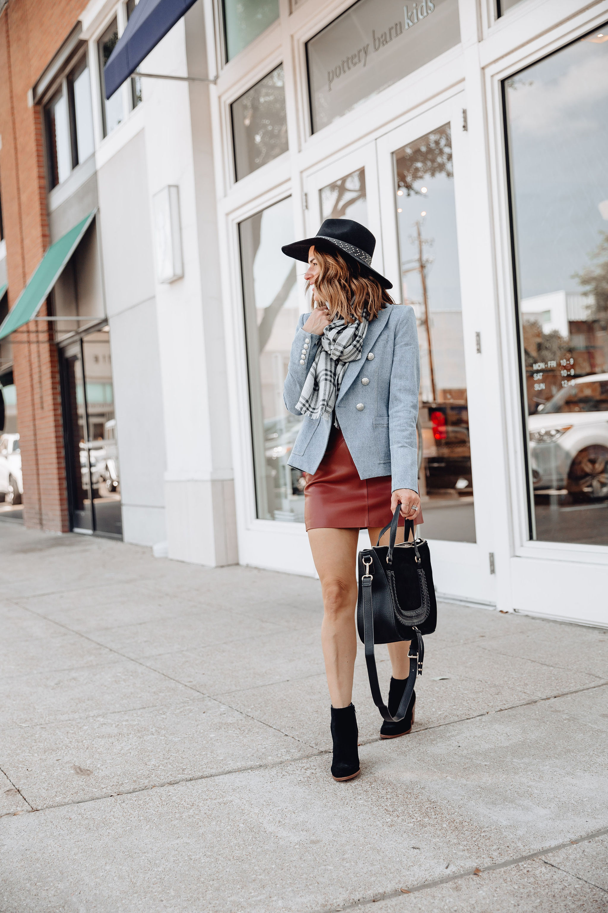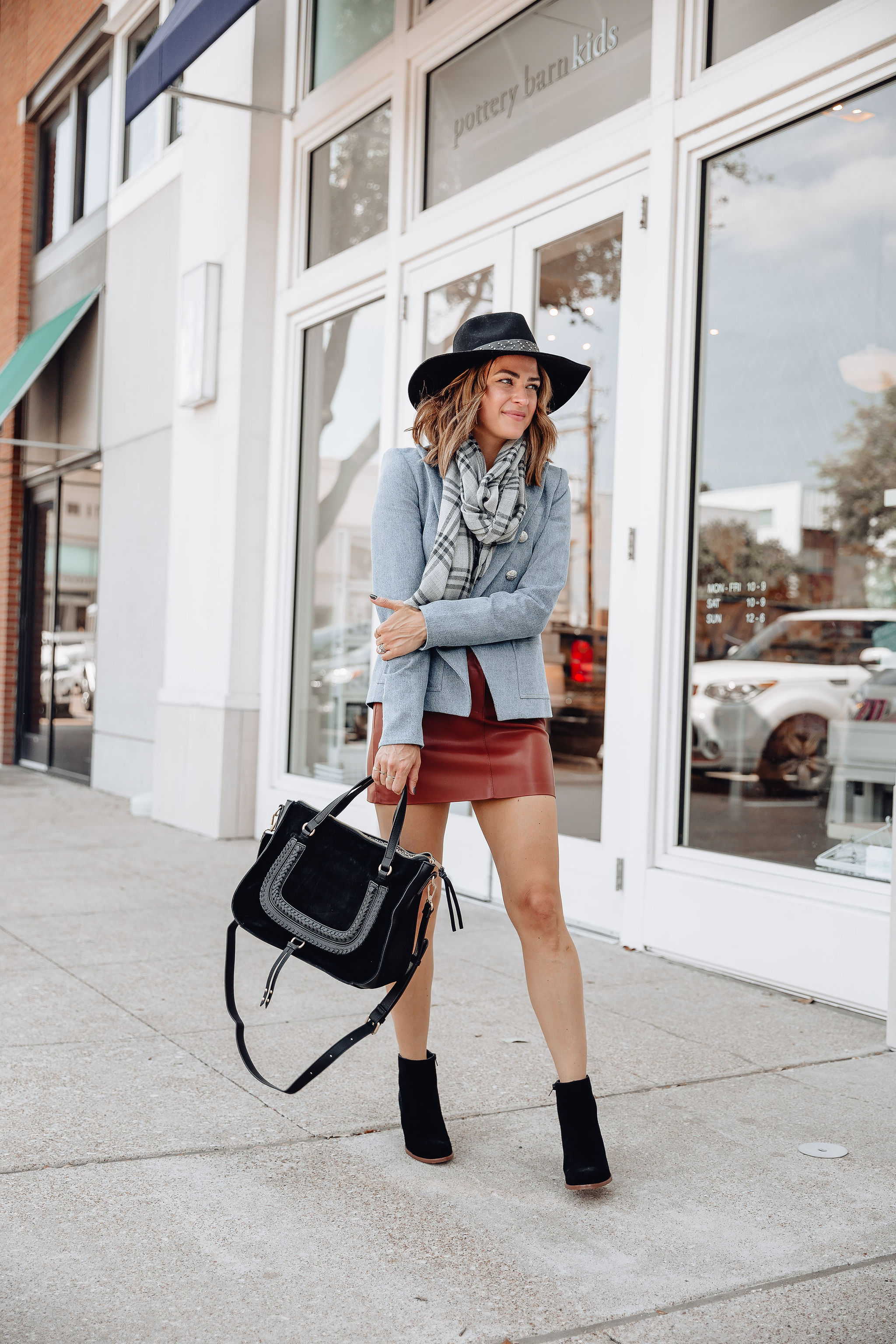 The temperatures finally dropped a little here in Dallas. By the temperature dropping I mean that at night it’s finally dropping under 80 degrees here, which in Texas is cool. I’m ready to bring out all the Fall things! This past weekend I got out all the Fall candles, started decorating our front porch with mums & pumpkins, & even pulled the trigger & bought some Pumpkin flavored Nespresso pods. I personally can’t jump on the pumpkin spice latte train (anyone else?), but I can jump on all the fall accessories. I am here for scarves, hats, booties, & new fall bags! Today, I’m sharing this fall look & rounding up some of my favorite fall accessories for you all to shop.