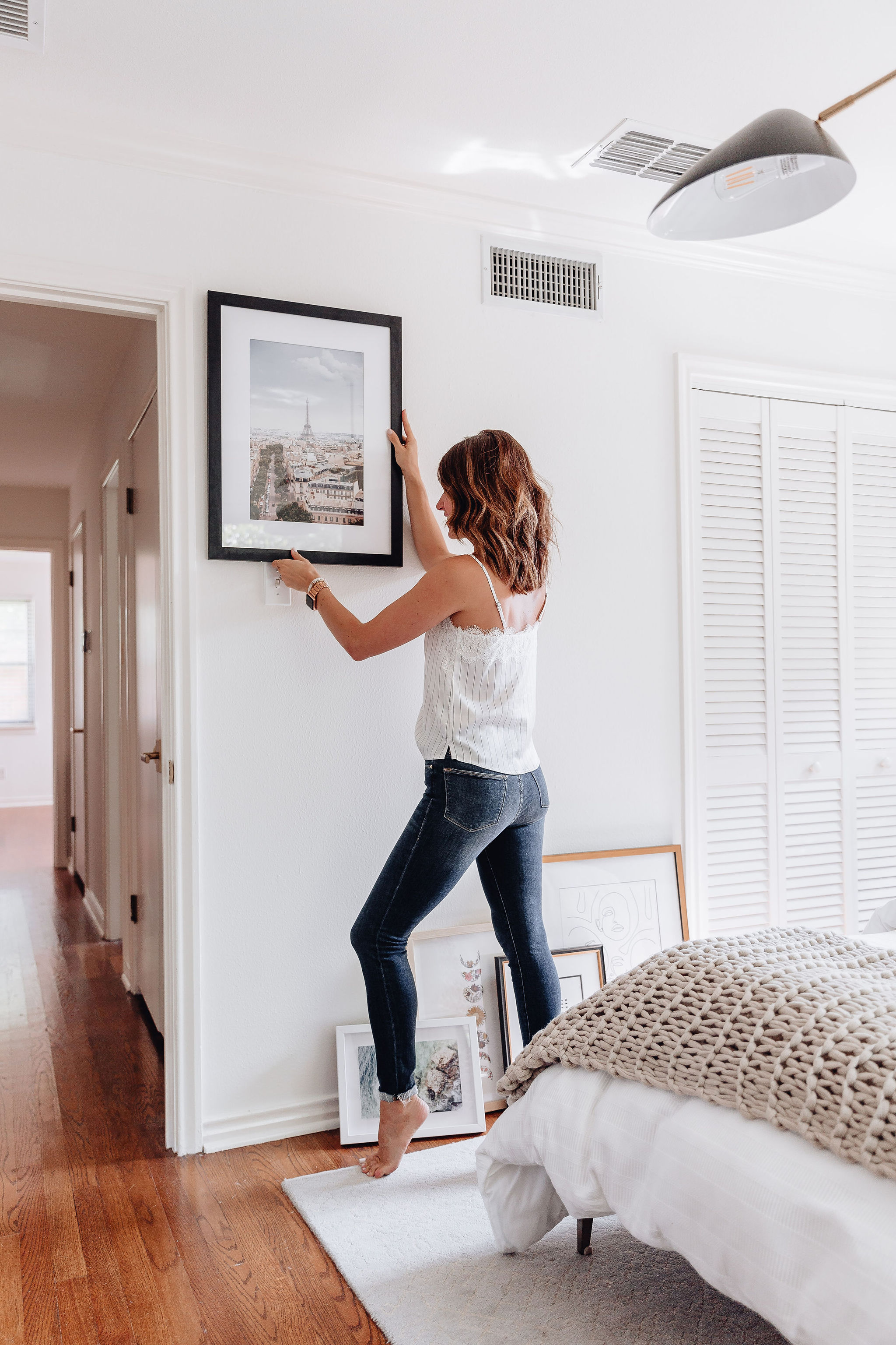I personally think a curated wall that has a collected feel is better than just going online one day & ordering a bunch of random pieces at once. I look at sites with prints often & save some of my favorites, so I can go back & revisit them as I need more art around the home. I also keep some meaningful photos from travel on hand that I want to frame or use. However you approach it, get your pieces together that you want to use.