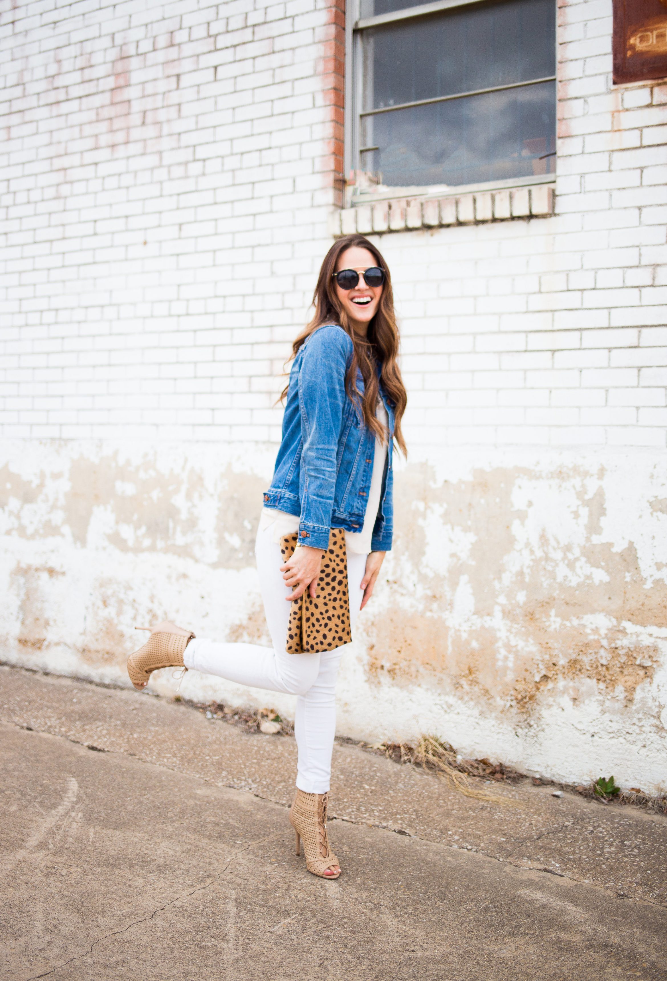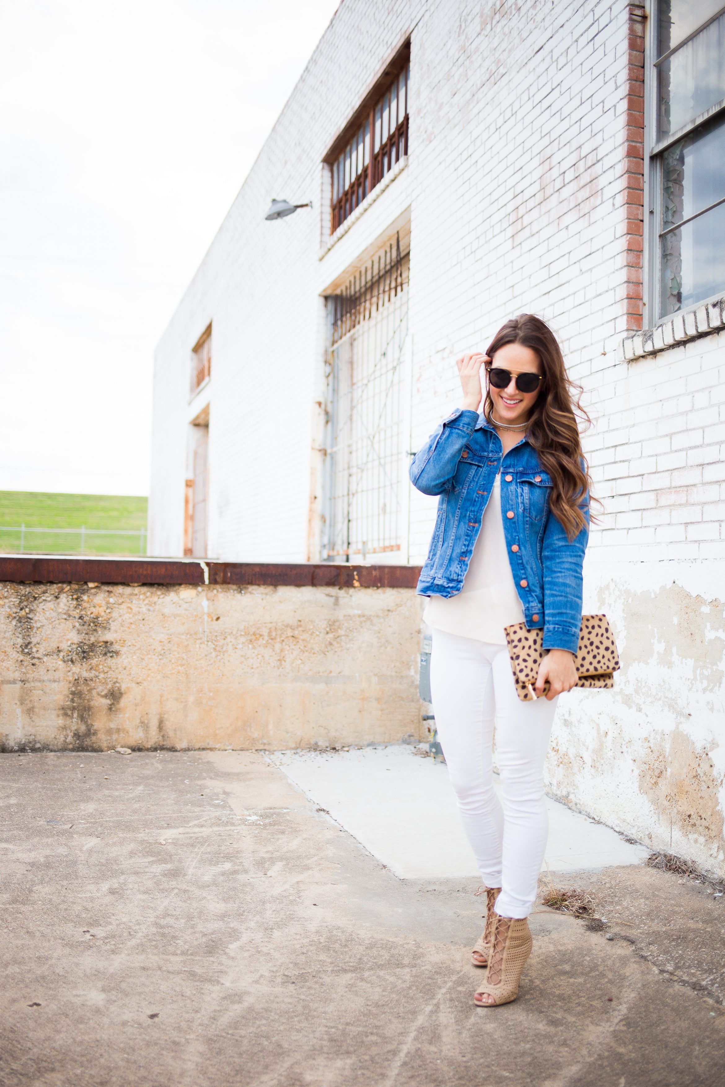 I love the sharp contrast of your all white outfit with the jean jacket and statement clutch! Also, you literally have hair goals.