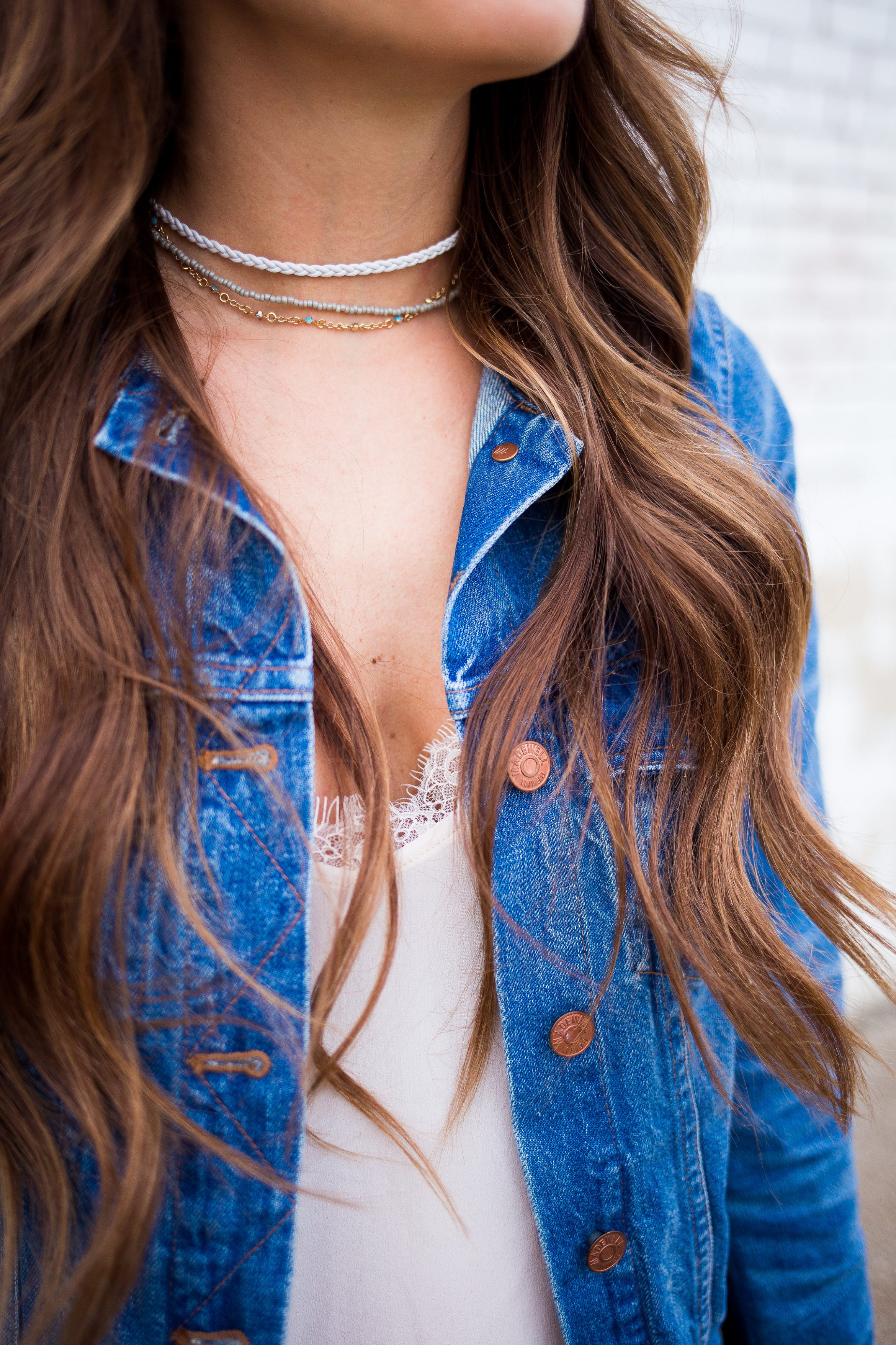 If I had a Spring uniform, this might be it. For real, please let me live in this outfit. Until I find the perfect new pair of white (possibly distressed) denim, these ole faithfuls are getting me my white jean fix. I paired them with this silk cami that I could seriously live in, my favorite open bootie, and my new denim jacket. I have a denim moto style jacket that I have worn so much that the CPW (cost per wear) has to be one cent per wear by now. I decided it was time to add another one into the rotation to mix it up. I wanted a classic style and this one is great quality and the perfect shade in my opinion. These booties also come in black and have been selling out quick and coming in and out of stock, so I linked a few options for you all!