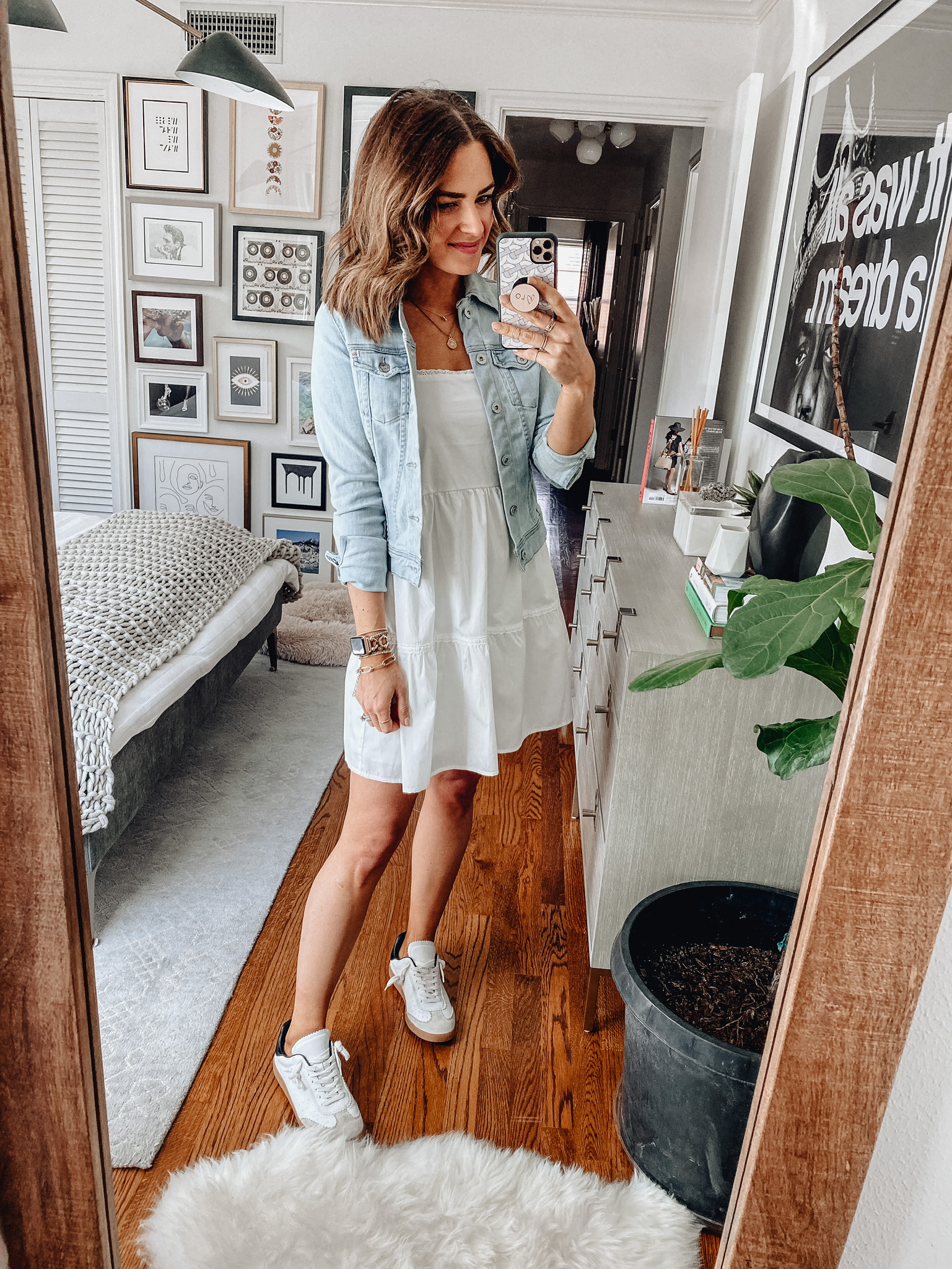 White Dress // Sandals // Jean Jacket // Sneakers