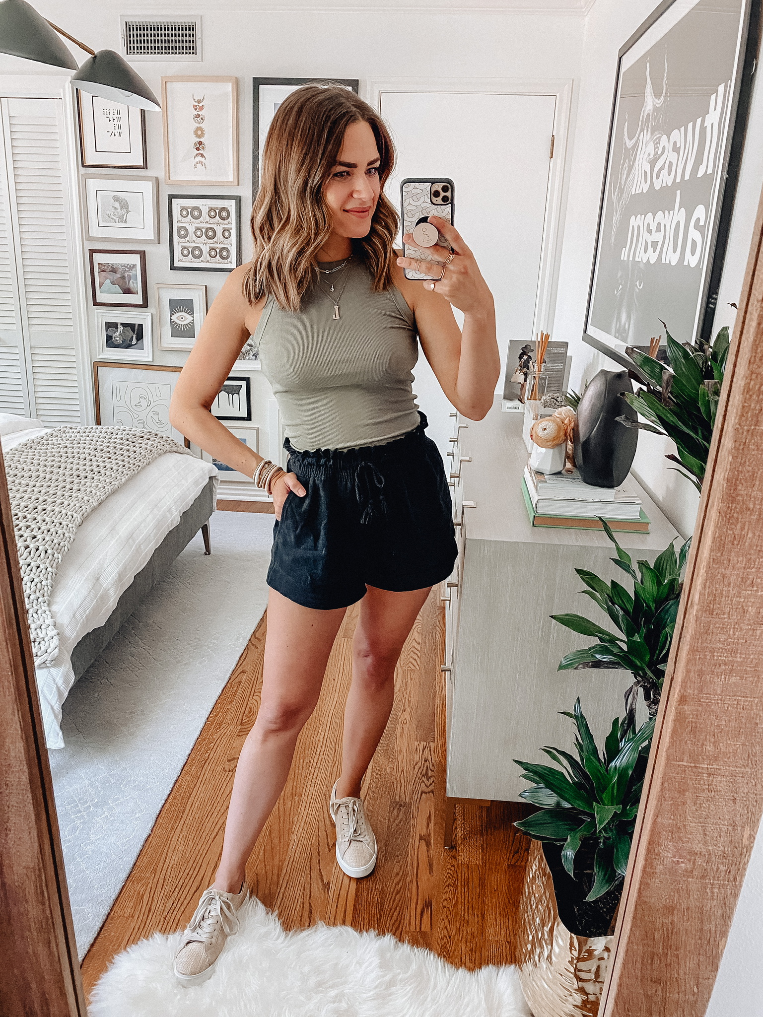 Office Tee // Shorts // Tank // White Jeans // Sneakers