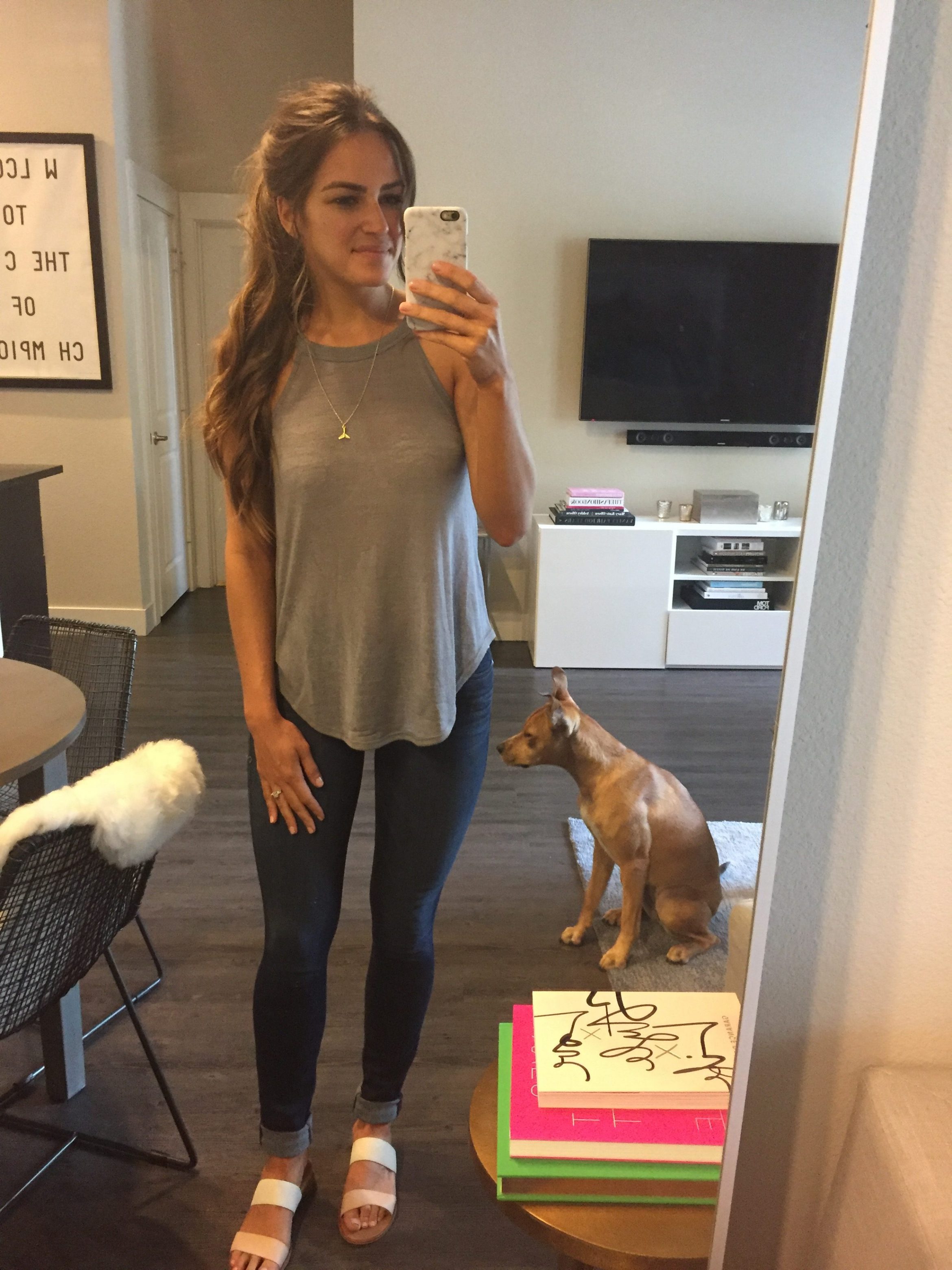This off the shoulder blouse and these jeans they sent were my favorite pieces! They also sent this amazing gray dress that had the softest lining ever and this adorable gray tank. I could literally own this tank in every color and wear it on repeat!
