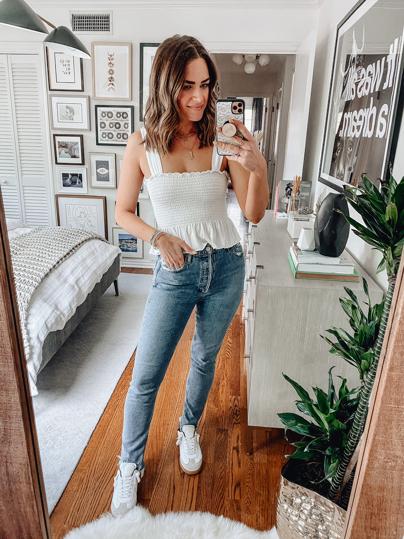 Top (XS / TTS) // Jeans (size down 1 size) // Top (XS / TTS) // Sneakers