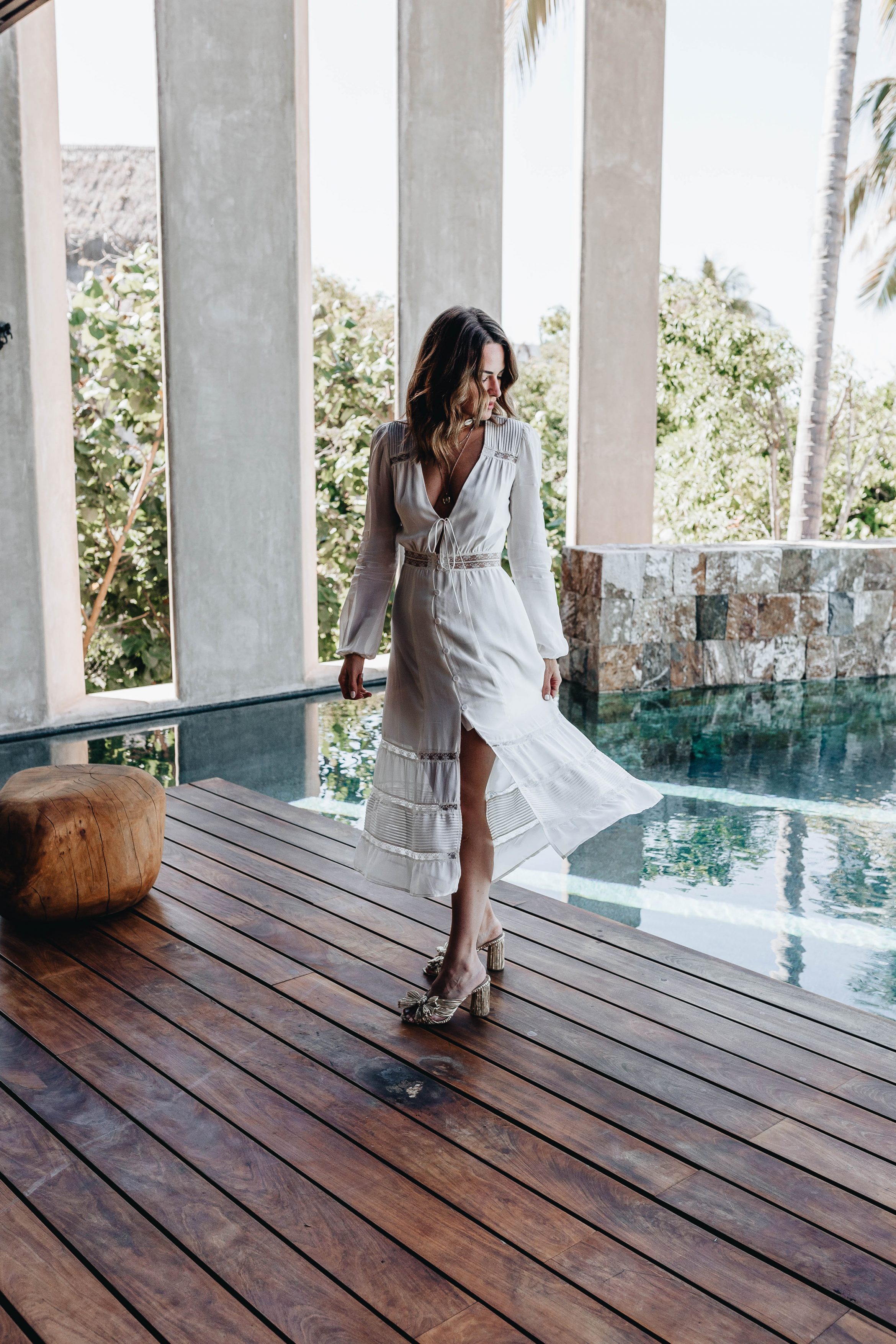 You may recall seeing this gorgeous white dress from my Punta Mita outfit recap. I’m obsessed with this piece. I actually also got it in black. The lace detail on this dress is so stunning. The tie & button detail on the top are beautiful, too. For a bride to be, I think this dress is beautiful for a shower or a rehearsal dinner. If you aren’t, it’s great for vacation (which is what I wore it for) or just any nice spring or summer day.